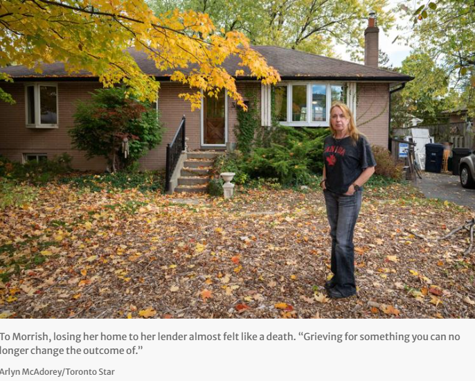 加拿大星星生活捷克佳/一个飘雪的清晨,63岁的伊冯·莫里什(Yvonne Morrish)回到她位于士嘉堡的平房时,发现门锁被换掉了。 她在这栋房子里生活了几十年——孩子们成长的身高刻度还留在客厅壁橱的门上。但如今,这里不再属于她。 门口的告示写明:由于拖欠房贷,她的贷款机构 RiverRock 抵…