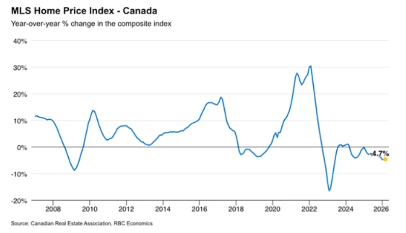 加拿大星星生活捷克佳/每年春季通常是房地产市场最活跃的时段,但2026年的加拿大楼市,却呈现出截然不同的景象——成交低迷、价格下行、信心不足。 在高利率、经济不确定性以及全球局势动荡的多重压力下,加拿大房地产市场正进入一个关键转折点。 **房价连跌四年,市场成交疲弱 自疫情初期房价飙升后,加拿大房地…