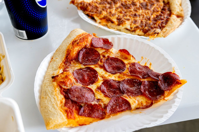 Costco的披萨片分量巨大,芝士香浓,厚实的饼底让人忍不住多拿几张餐巾纸。芝士款的钠含量甚至比辣香肠款更高,这对正在控制钠摄入的人群尤其需要注意。