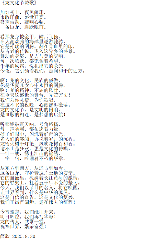 正如诗人闫欣在《龙文化节赞歌》中写道:“龙的文化节,是文明的回响,是血脉的相连,是梦想的启航。”