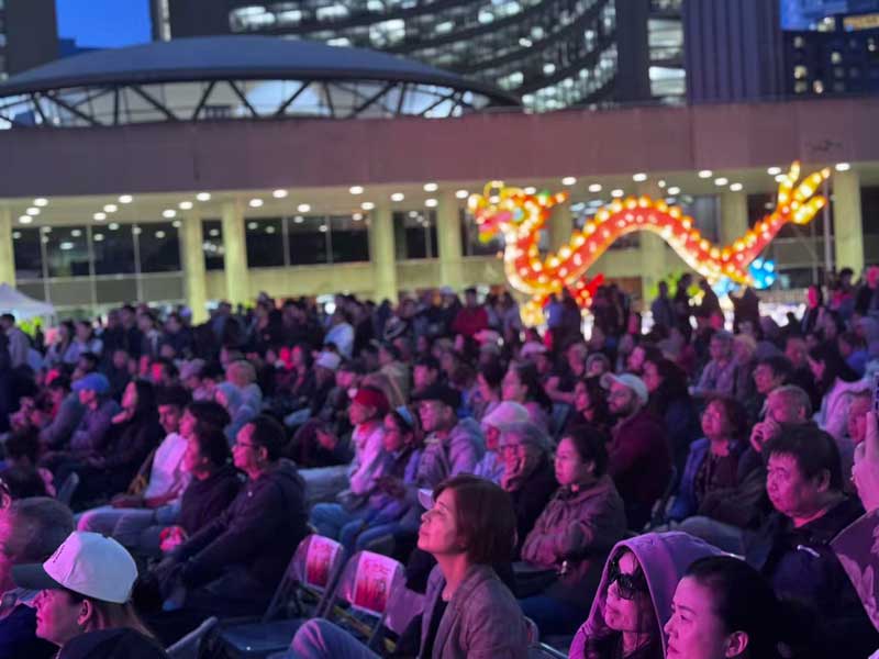 (星星生活记者捷克佳报道)“5、4、3、2、1!”伴随着全场数千观众与主持人齐声倒数,象征吉祥与力量的巨龙在周五夜晚被点亮。霎时间,鼓乐齐鸣、金光闪耀,巨龙仿佛腾空而起,瞬间点燃了多伦多市政厅广场的热烈氛围。在万众瞩目中,第六届多伦多龙文化节(Toronto Dragon Festival)盛大启幕。