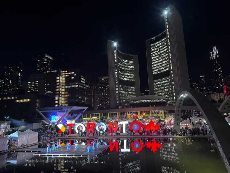 夜幕下,多伦多市政广场的舞台灯火辉映,光影与乐声交织,最后一场演出在观众久久不散的掌声中落下帷幕。有人依依不舍地拍下夜色与舞台,有人已经开始期盼来年的再聚。