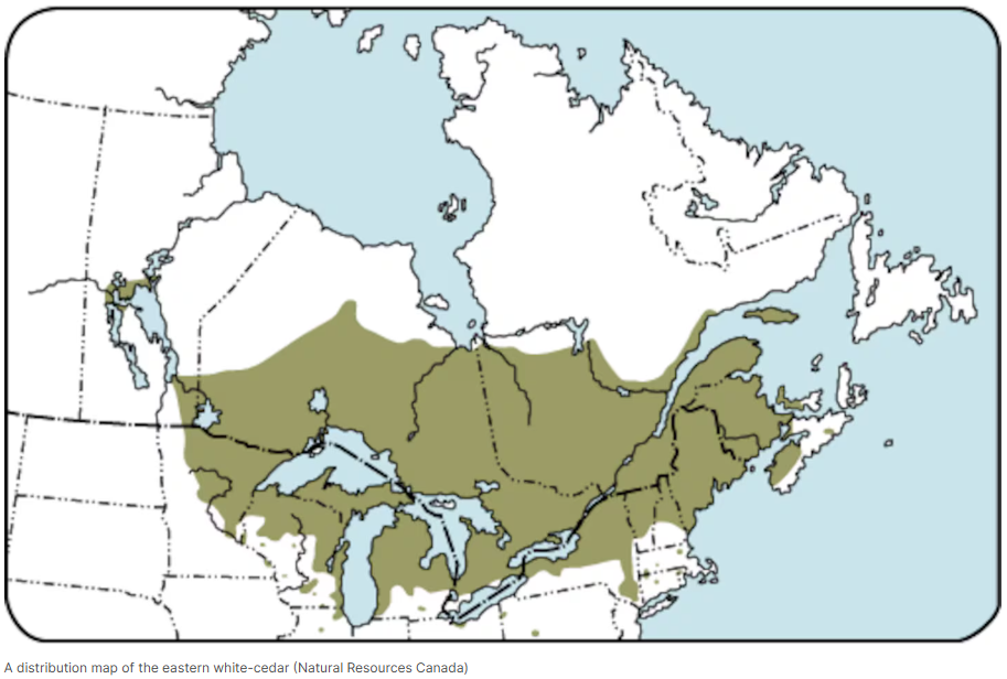还提到“松树”与“雪松”:西部红雪松分布在西海岸与卑诗内陆,东部白雪松从曼尼托巴-安大略交界延伸至新斯科舍和圣劳伦斯河口。