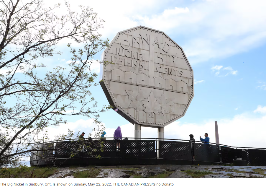 【安省萨德伯里的“大镍币”。THE CANADIAN PRESS/Gino Donato】