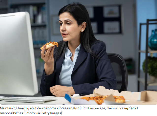 随着责任增加和空闲时间减少,保持健康习惯变得更具挑战。De Santis指出:“大多数人50岁时的能量消耗,已远不及20岁时。”