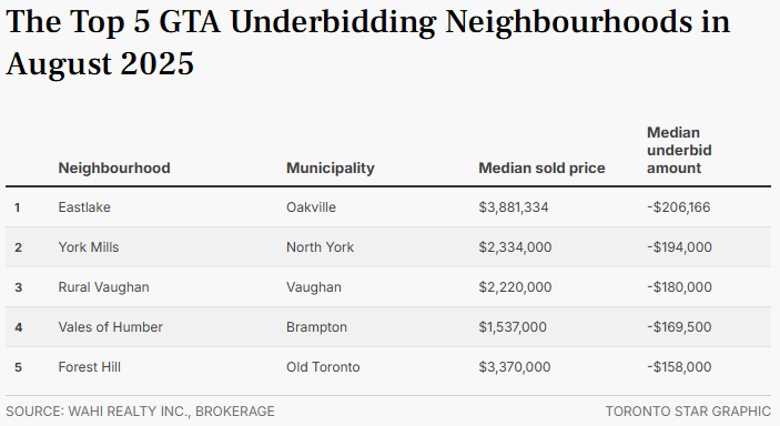 加拿大星星生活捷克佳、大多伦多地区(GTA)的房地产市场正经历近年来罕见的低谷。最新数据显示,几乎所有社区的房屋成交价都低于挂牌价,而平均房价则回落至2021年初的水平,凸显出市场的深度疲软与买方市场的全面回归。
