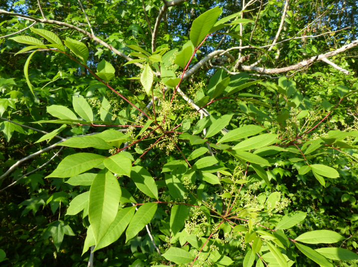 毒漆树主要分布在安大略省南部和魁北克省。它的特点是成簇的 7 至 13 片光滑小叶,春天呈黄色,夏天则转为绿色。