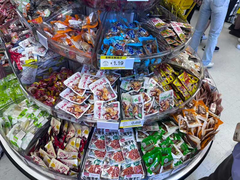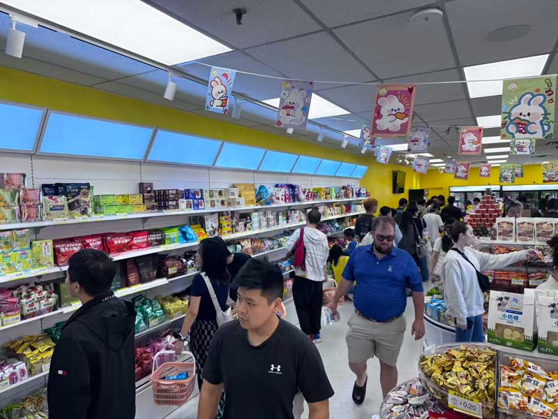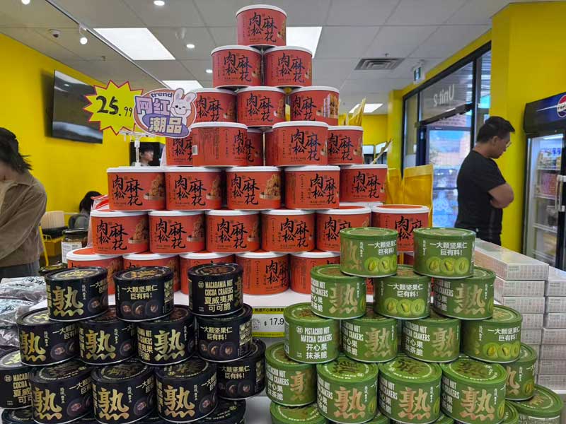 Toonie Eats被誉为多伦多吃货的新地标。开业当天,店内陈列了全球爆款零食,包括星巴克月饼、好利来半熟芝士等独家新品,受到热烈追捧。超过100款零食供消费者免费试吃,现场排起长队,欢声笑语不断。