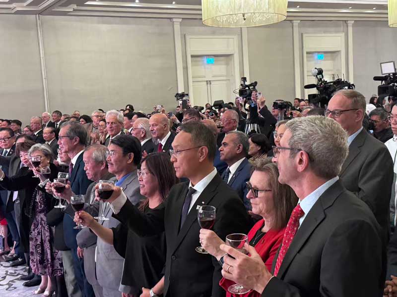 加拿大三级政府代表、各国驻多伦多领团官员、中资机构、学生学者代表及各界嘉宾500余人出席招待会,共同见证这一重要时刻。