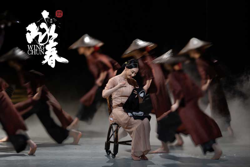 舞剧《咏春》与武术:舞剧《咏春》以精准、效率和技术著称的南派中国传统武术致敬,以近身、迅捷闻名。咏春运用对手之力反制,并以快速手法、严密防守和睿智用力、避免无谓争斗的哲学见称。