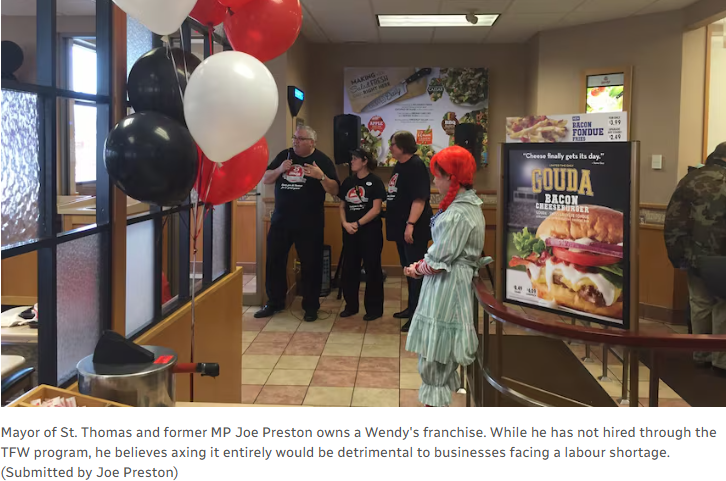 St. Thomas市长、Wendy’s加盟商Joe Preston虽然认同“本地青年应优先就业”,但反对“一刀切”:“TFW在某些行业确实有存在必要,我担心绝对的禁止并不可行。”
