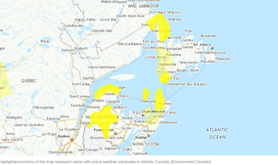 与此同时,新不伦瑞克省中部地区发布了寒冷预警,预计夜间气温将降至零下30度以下。