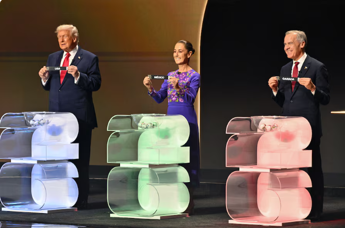 现场嘉宾阵容空前,包括加拿大总理马克·卡尼、美国总统唐纳德·特朗普及墨西哥总统克劳迪娅·欣鲍姆,三国领导人共同见证这届史上规模最大世界杯的路线图公布。