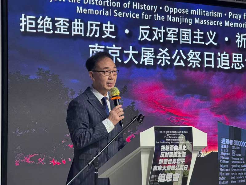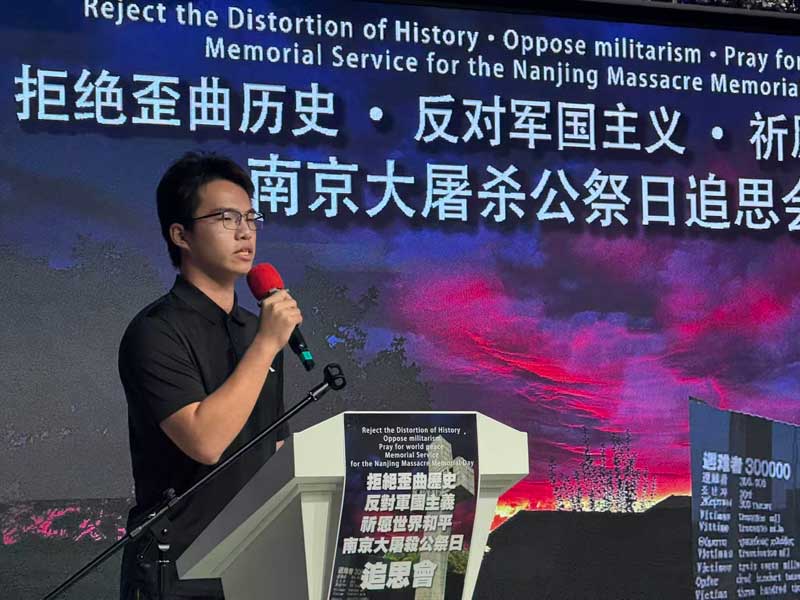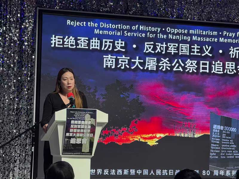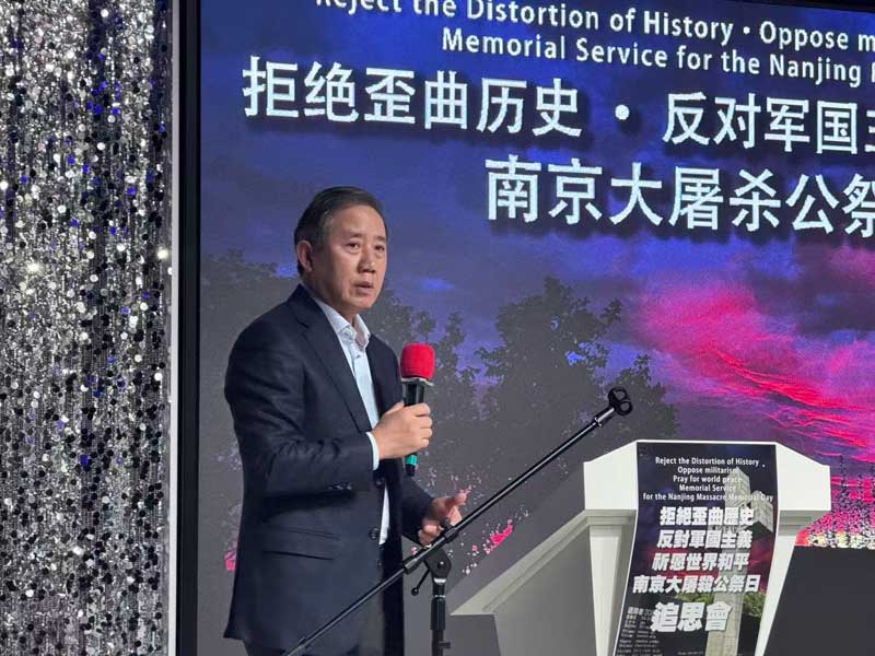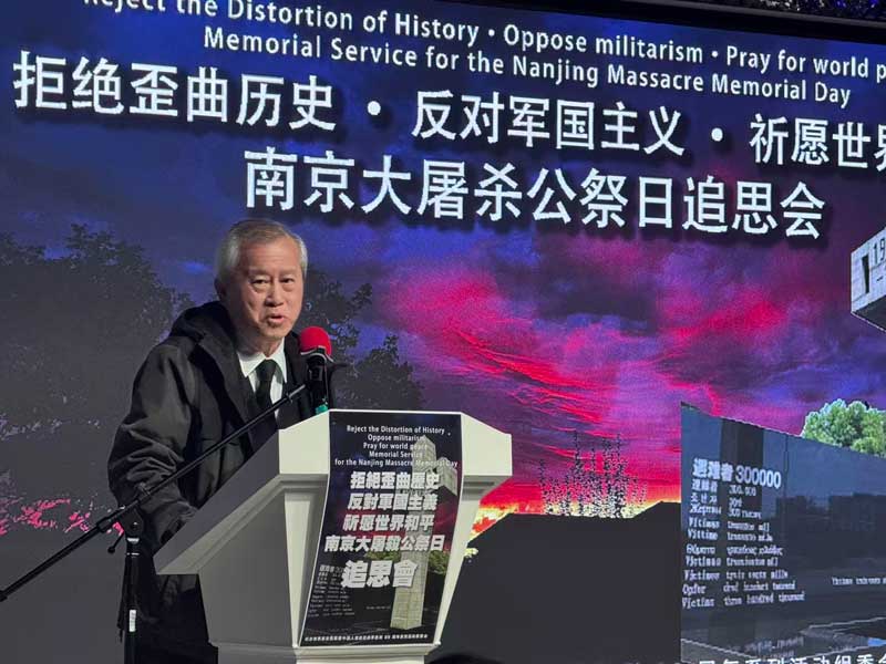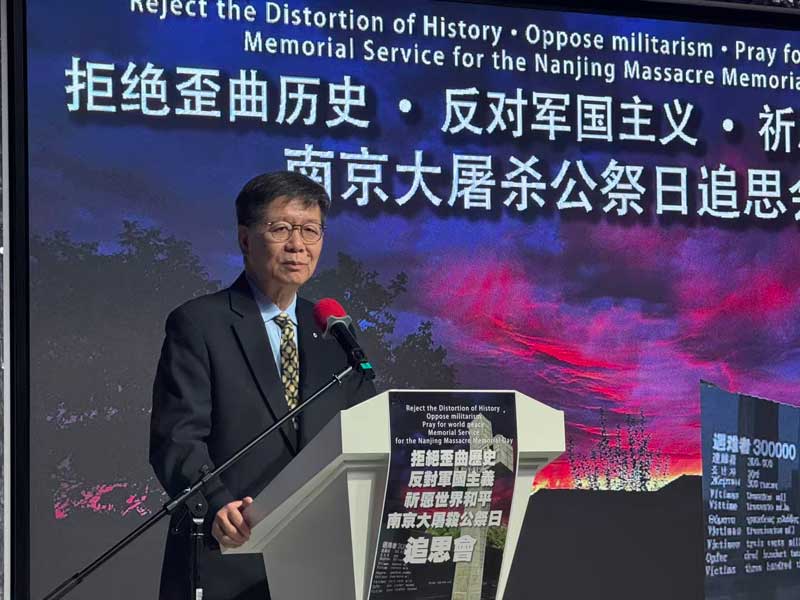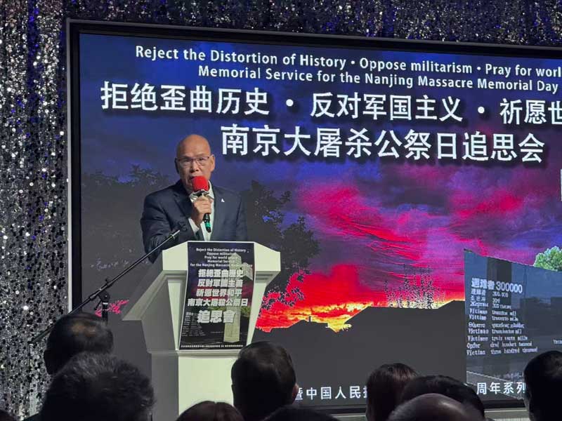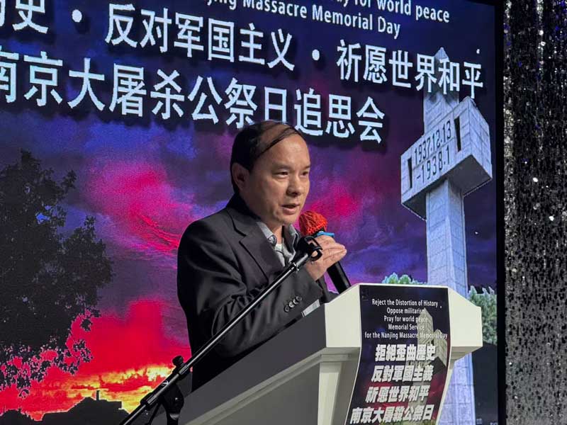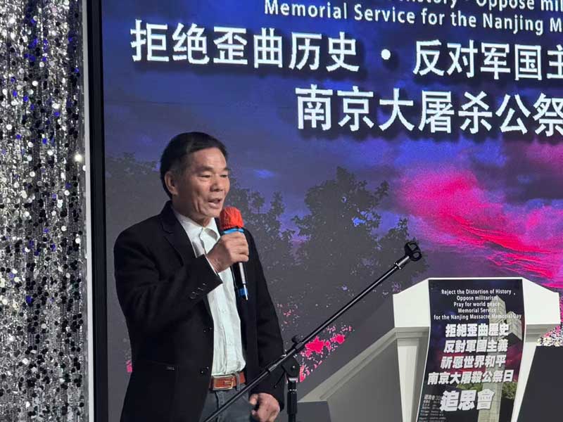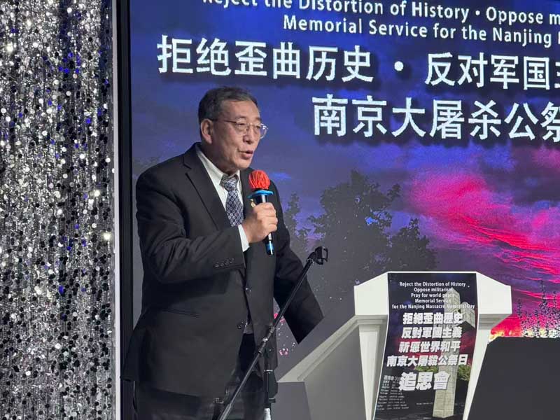 张俭强调,近年日本右翼势力及军国主义思潮有所回潮,日本政要涉台言论更是冲击战后国际秩序。他呼吁海外华人团结一致,坚决反对历史修正主义和任何形式的战争挑衅。“历史不能被遗忘,正义不能被沉默。”他说。