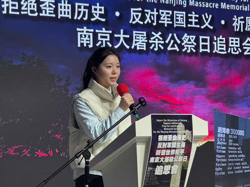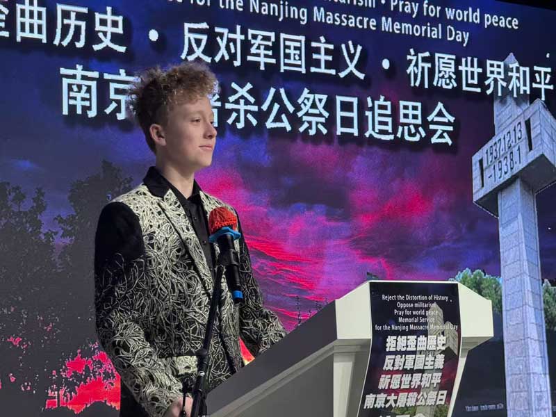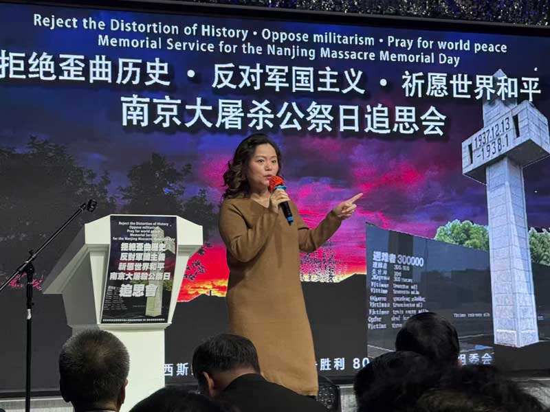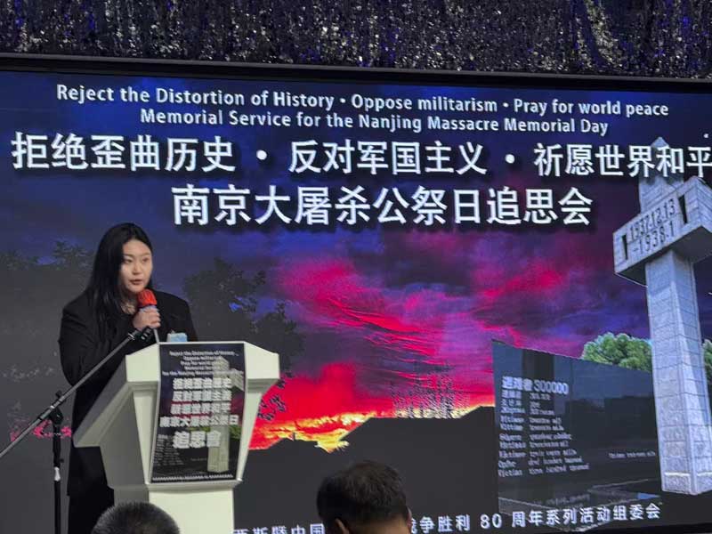 活动伊始,全场观看历史短片并集体默哀。纪念二战胜利80周年活动组委会主席张俭在致辞中指出,南京大屠杀是人类历史上无法回避的伤痛,任何否认、淡化或篡改历史的行为都必须坚决抵制。