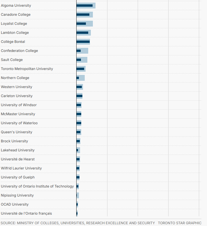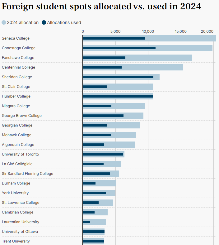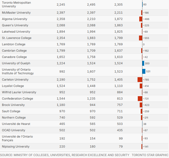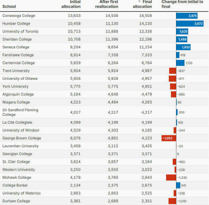 这些“退回的配额”,随后被重新分配给包括多伦多大学、劳伦森大学和汉博学院在内的 8 所院校。