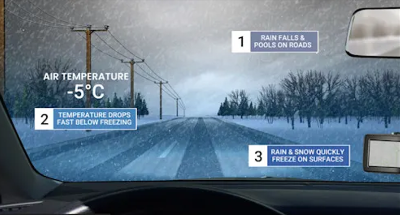 这不仅会让道路和人行道极其湿滑,而且由于形成的冰层往往更为透明、不易察觉,危险性更高——黑冰正是这样形成的!