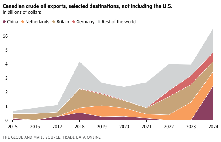 随着跨山输油管道扩建项目投入运营,加拿大对亚洲市场的能源出口能力显著提升。数据显示,该管道启用后一年内,加拿大原油出口量增长超过八成。与此同时,美国对委内瑞拉石油供应的进一步限制,也促使中国炼油企业加大对加拿大能源的兴趣。