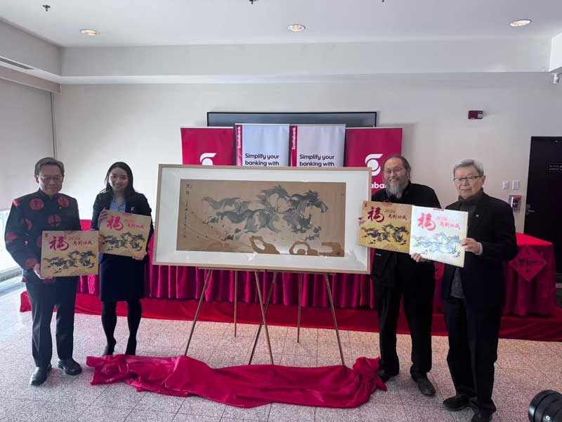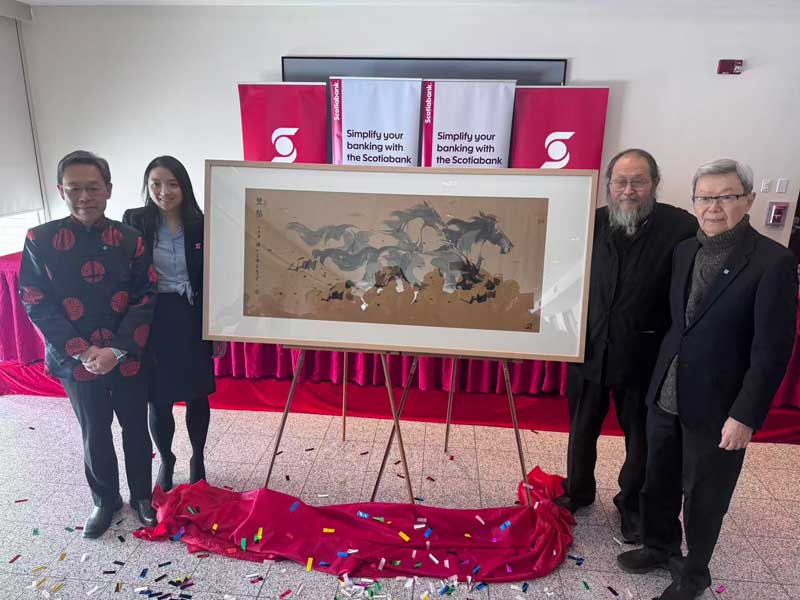 (星星生活记者捷克佳报道)随着2026年农历马年的临近,由加拿大丰业银行赞助、大多伦多中华文化中心主办的马年庆祝活动,《天地龙马》章天柱(Tien Chang)艺术展于1月22日正式揭幕。
