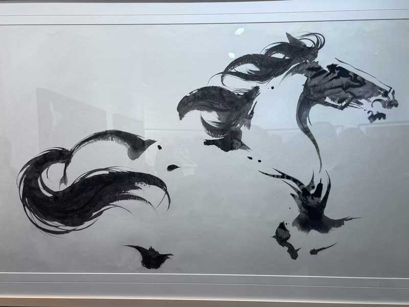 据章天柱介绍,本次展览共展出27件作品,包括26幅绘画作品及1件书法作品,全部以中国画的审美与技法为根基,题材围绕马的力量、速度、节奏与气韵展开。