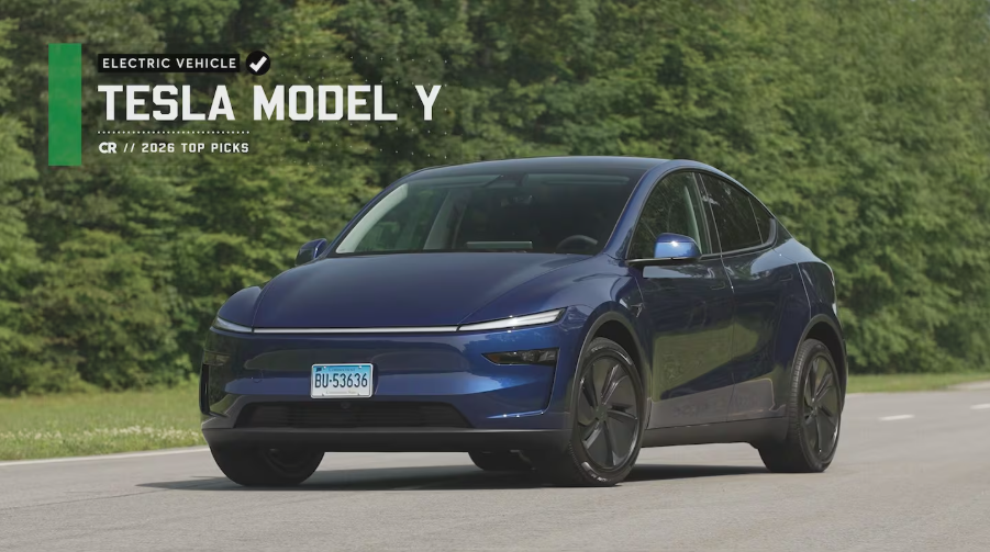 特斯拉Model Y也位居电动汽车榜首,而且,消费者报告2026年评选出的10款最佳车型首次全部提供混合动力或电动汽车版本。