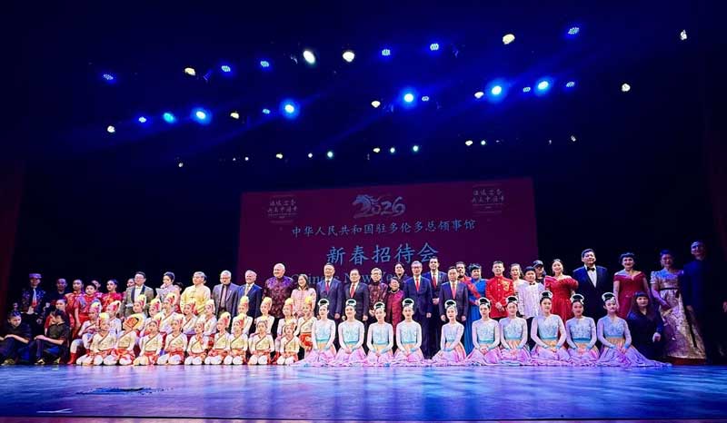 加拿大星星生活捷克佳/2月6日晚,中国驻多伦多总领馆在大多伦多中华文化中心隆重举行“2026年新春招待会”。加拿大各级政府官员、领区华侨华人代表、中资机构、留学生及社会各界人士500余人欢聚一堂,共庆农历新春佳节,现场洋溢着喜庆热烈、温暖祥和的节日氛围。