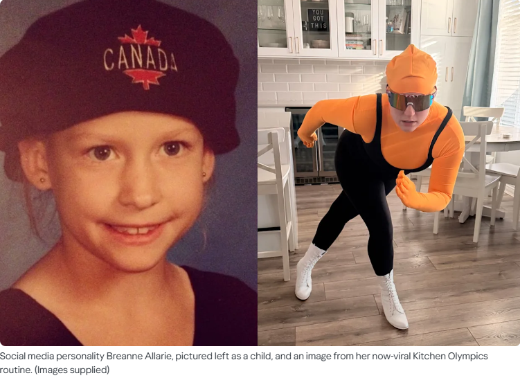 卑诗省的社交媒体创作者布里安娜·阿拉里最近火遍网络——她穿着速滑服、戴着护目镜,在自家厨房岛台旁飞速滑行,仿佛置身奥运赛场。