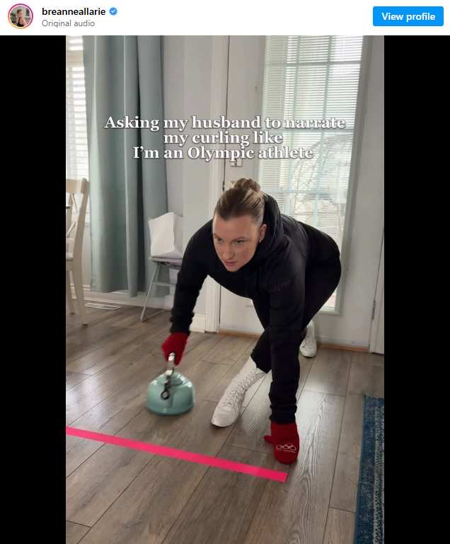 如今,这个“出口”变成了全职事业。她甚至得到了品牌、名人和奥运官方账号的关注,最近奥运官方还挑战她尝试冰壶项目。