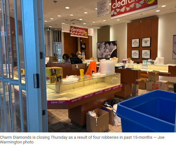 这是艾琳米尔斯第二家倒闭的珠宝店,奥沙瓦的另一家也关门了。这有什么意义呢?犯罪分子得逞了,而他们侵害的商店却在关门。