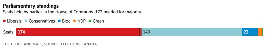 最终,自由党席位达到174席(总席位343),跨过多数政府所需的172席门槛。