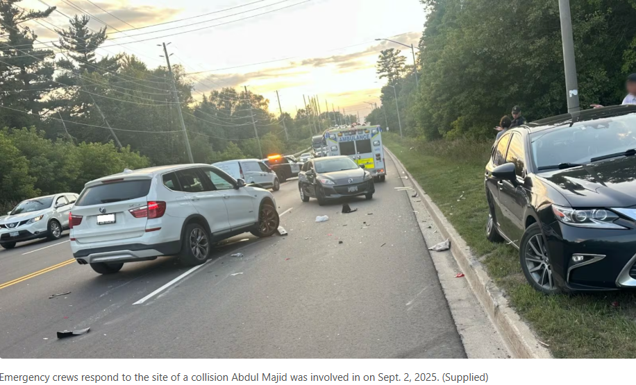 马吉德现年65岁,居住在安省枫树镇(Maple)。他表示,9月2日,他在旺市(Vaughan)驾车时,因交通拥堵而减速,结果被后车追尾。