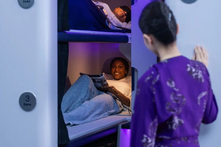 近日,新西兰航空(Air New Zealand)正式推出全球首个经济舱“睡眠舱”——Skynest(空中卧铺),让普通乘客也能在飞机上真正躺平睡觉。‘