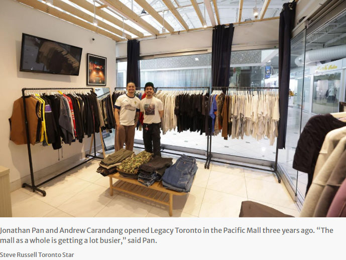 三年前,这对从小一起长大的朋友将她们的线上复古服装店Legacy Toronto搬到了这里,开设了一家实体店。店内的一块招牌自豪地宣称,这里是北美最大的室内亚洲购物中心:“你一定要来看看。”