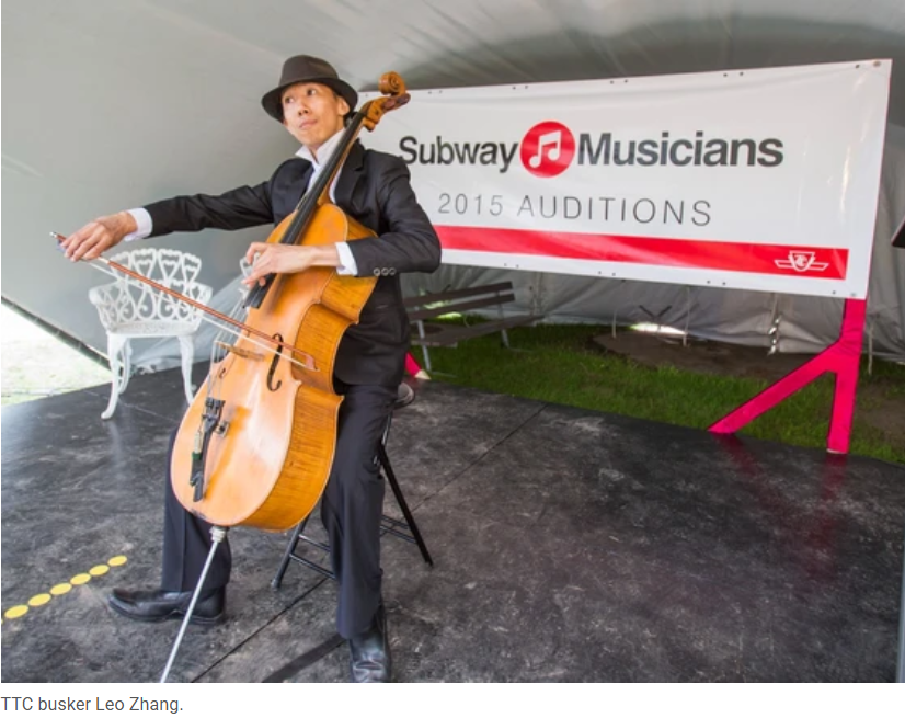 张弛是参与多伦多公车局(TTC)29个地铁站驻场演出项目的89位音乐家之一,该项目已有45年以上的历史。TTC的艺术家每三年通过一次试镜选拔产生,像张弛这样的音乐家表示,他们选择在熙熙攘攘的通勤人群中表演,希望能为人们带来一丝慰藉。